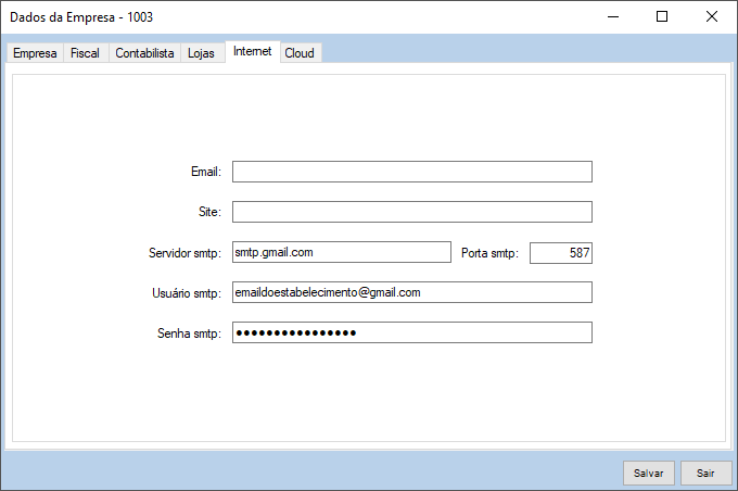 Observação: Em caso de dúvidas sobre estas informações, pesquise por "Configuração do servidor smtp" da conta do e-mail que será utilizado.