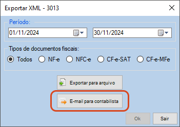 Observação: O e-mail será enviado para o endereço configurado nos dados do contabilista e conterá os documentos fiscais eletrônicos (XML) do período selecionado.